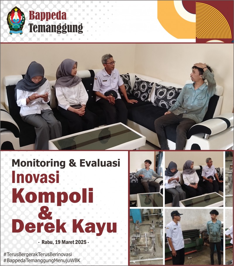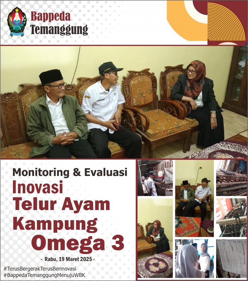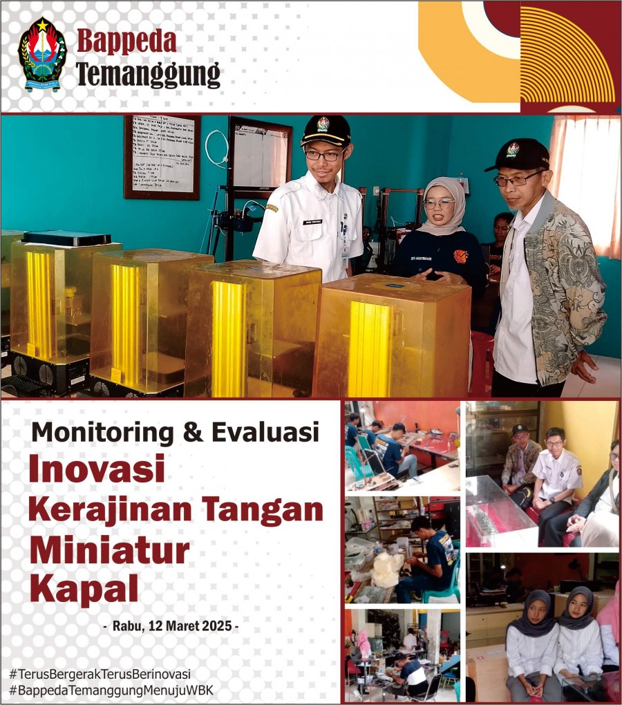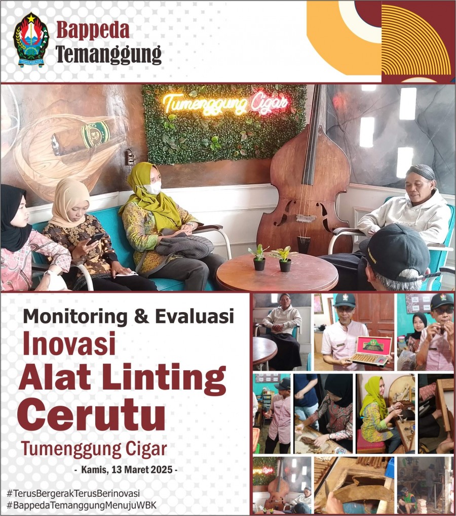 Kategori Smart Society (Masyarakat Cerdas) Kategori: Smart Society (Masyarakat Cerdas) Bidang Perencanaan Ekonomi, Sumber Daya Alam dan Infrastruktur 12 Desember 2025 19:57:00 22 Rapat Koordinasi Pemenuhan Pelaporan Ke Kemendagri Terkait Upaya Percepatan Pertumbuhan Ekonomi Tahun 2025 Selengkapnya Kategori: Smart Society (Masyarakat Cerdas) Bidang Penelitian dan Pengembangan 10 Desember 2025 07:11:00 36 Penganugerahan Penghargaan IGA Tahun 2025 Selengkapnya Kategori: Smart Society (Masyarakat Cerdas) Sekretariat 09 April 2025 10:14:00 85 Desk Rancangan Indikator Kinerja Jangka Menengah (Tahun 2025-2029) Bidang Pembangunan Manusia dan Pemerintahan Selengkapnya Kategori: Smart Society (Masyarakat Cerdas) Sekretariat 19 Maret 2025 14:57:00 353 Monev Inovasi - Telur Ayam Kampung Omega 3 Selengkapnya Kategori: Smart Society (Masyarakat Cerdas) Sekretariat 19 Maret 2025 14:05:00 285 Monev Inovasi - Kompor Oli dan Derek Kayu Selengkapnya Kategori: Smart Society (Masyarakat Cerdas) Sekretariat 13 Maret 2025 13:04:00 272 Monev Inovasi - Alat Linting Cerutu Selengkapnya Kategori: Smart Society (Masyarakat Cerdas) Sekretariat 12 Maret 2025 11:23:00 234 Monev Inovasi - Bumbu Sego Selengkapnya Kategori: Smart Society (Masyarakat Cerdas) Sekretariat 12 Maret 2025 10:34:00 246 Monev Inovasi - Kerajinan Tangan Miniatur Kapal Selengkapnya Kategori: Smart Society (Masyarakat Cerdas) Sekretariat 13 Februari 2025 12:07:00 417 Festival Budaya Desa Tempelsari, Kecamatan Tretep Selengkapnya Kategori: Smart Society (Masyarakat Cerdas) Sekretariat 05 Februari 2025 12:37:00 352 Monev Inovasi Produk Olahan dari Biji Kakao (Desa Margolelo, Kecamatan Kandangan, Kabupaten Temanggung) Selengkapnya Kategori: Smart Society (Masyarakat Cerdas) Sekretariat 05 Februari 2025 09:47:00 314 Monev Inovasi Gula Semut guna Mendukung Riset Kolaborasi antara BRIN dengan BAPPEDA Kabupaten Temanggung tahun 2025 Selengkapnya Kategori: Smart Society (Masyarakat Cerdas) Sekretariat 12 Desember 2024 12:32:00 525 DPPPAPPKB Kabupaten Temanggung Launching Gerakan Orang Tua Asuh Cegah Stunting (GENTING) Selengkapnya 123NextLast