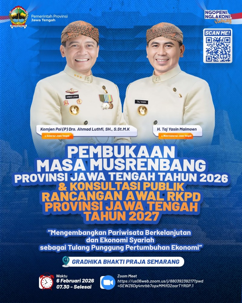 Musrenbang Provinsi Jawa Tengah Tahun 2026 Kategori: Smart Government (Pemerintah Cerdas) Rabu, 04/02/2026 07:30 3 .